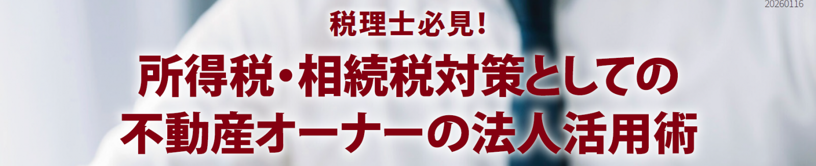 本セミナーでは、全国で100名以上の地主・大家さんを支援し、相続税1億円、所得税300万円の節税を実現してきた大家専門税理士・吉田博之先生に“現場で本当に通用する法人活用術”を事例とともに解説していただきます。